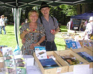 Eingeladen zur Teilnahme war auch unser Verein. Wir nahmen gerne dieses Angebot an, denn die Flößerei wird auf der Wasserstraße Isar ja seit Jahrhunderten gewerblich betrieben. Unser Stand auf der Frühlingswiese war stets dicht umlagert von den vielen Interessenten, die sich über die Pläne und Ziele des Vereins informieren wollten. Unsere Vorsitzende Gabriele Rüth und Vize Hermann Paetzmann gaben Auskunft über dessen Ziele und boten ihre Waren an.