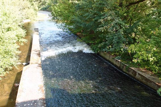 Geschichtlicher Hintergrund dazu: Zur Schonung der Saalewehre wurden wie bei uns auch Floßgassen angelegt. Anfangs bestand der Kahlaer Floßdurchlass nur aus zwei Wänden von Balkenholz, die auf dem Wehr errichtet wurden und zwischen denen der Wehrboden mit Pfosten schräg ausgelegt wurde, sodass auf dieser schiefen Ebene das Floß allmählich herabglitt. Am 28. Oktober 1921 konnte das erste Floß auf einer neuen, zirka 40 Meter langen Floßrinne unter dem 7. Floßhaus passieren.
