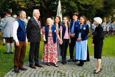 Seinen 80. Geburtstag feierte der ehemalige bayerische Ministerpräsident Dr. Edmund Stoiber in seinem Wohnort Wolfratshausen. Als Ehrenbürger der Stadt wurde er entsprechend groß an der Alten Floßlände gefeiert: Es gratulierten 1. Bürgermeister Klaus Heilinglechner, die Gebirgsschützen, bei denen er Ehrenmitglied ist, sowie auch wir von der Flößerstraße - doch nicht nur das: Weil sich Dr. Stoiber während der schlimmen Corona-Zeiten für die Betriebe der Flößerfamilien Franz Seitner und Sepp Seitner sowie Michael Angermeier mehrfach eingesetzt hatte – 2020 und 2021 konnten keine Flöße fahren – war die Geburtstagsfeier die beste Gelegenheit, ihm als Dank zum „VIP“-Vereinsmitglied zu ernennen. Auch Geburtstagsgeschenke hatten wir mitgebracht, die kunstvoll (von „Bavaria Selection“) auf einem großen Holzfloß drapiert waren.