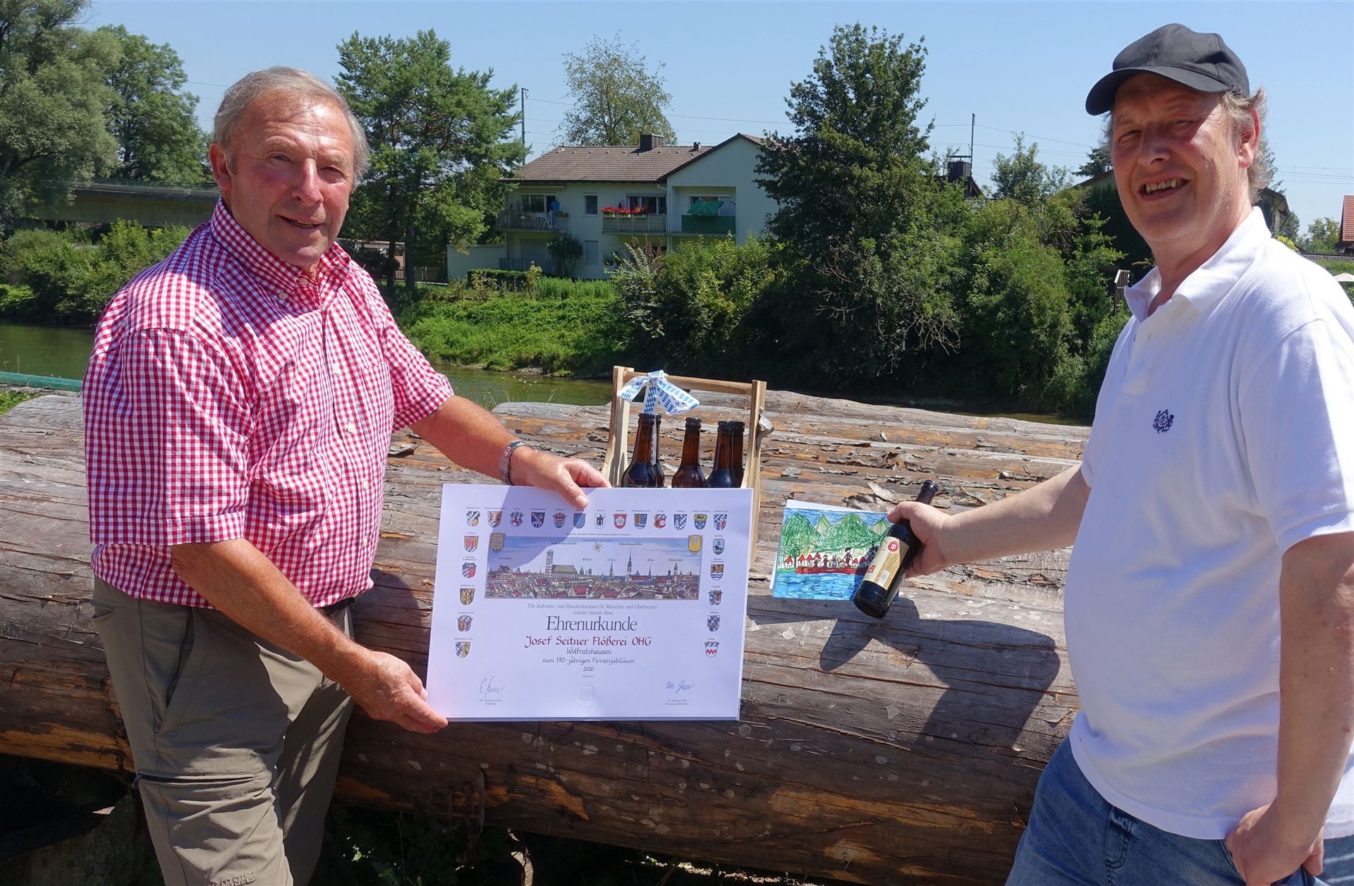 Unser Vereinsmitglied Sepp Seitner erhielt am 30. Juli 2020 eine Ehrenurkunde der Industrie- und Handelskammer (IHK) für München und Oberbayern für das 170-jährige Bestehen des Seitner’schen Floßbetriebs. Unser Verein gratulierte ihm und seiner Familie zum Firmenjubiläum ganz herzlich, denn dass ein Betrieb so lange in Familienbesitz ist, ist äußerst selten. Das sagte auch der IHK Hauptgeschäftsführer Dr. Manfred Gößl, der extra dafür an den Weidacher Floßplatz gekommen war, um die Urkunde persönlich zu überreichen und zu gratulieren.
