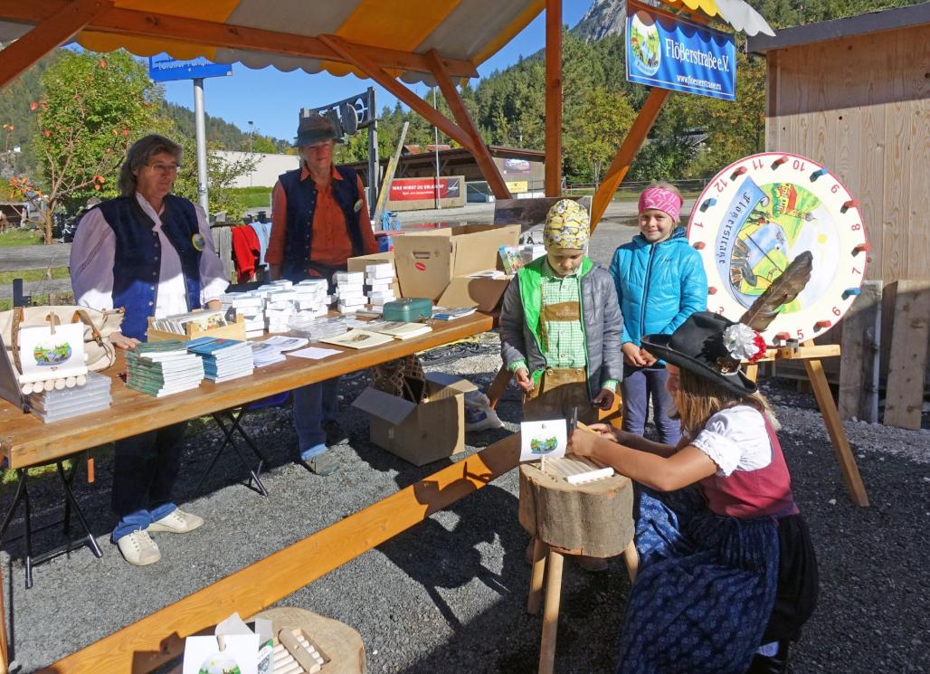 Die drei Projektpartner - Gemeinde Scharnitz, Naturpark Karwendel und der Tourismusverband Olymiaregion Seefeld - luden zum 2. Trifterfest und die Einweihung Infozentrum Scharnitz ein. Damit ist dieses ehrgeizige Projekt in Scharnitz Holzerhütte, Infozentrum und Gestaltung der Außenanlage - abgeschlossen. Auch unser Verein war herzlich eingeladen. Wir, das waren Gabriele Rüth, Barbara Kerschbaumer und Gabriele Riegel, beteiligten uns mit einem Informationsstand sowie Flößebasteln, das besonders den Kindern - wirklich sehr viel Spaß machte.